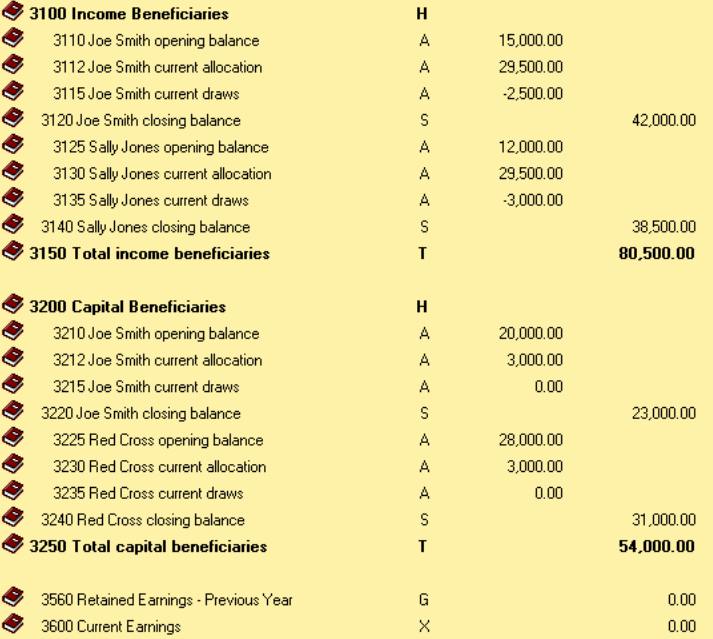 The extract shown below is typical of the equity section of the trial balance for a trust.
