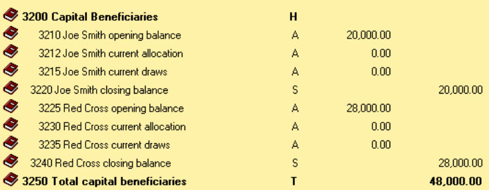 The structure of the accounts for a trust is very similar to that of a partnership. The primary difference is that where the income and capital beneficiaries are not the same, separate accounts should be maintained for the income beneficiaries and the capital beneficiaries. Furthermore, a separate capital account is typically needed to record the initial contribution of capital by the settlor.